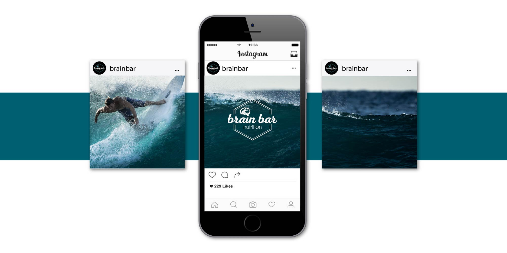 When we are told of the ideas for inspiration include surfing, mountains, calm state of mind, fresh, natural, and earthy, our little design heart sings. This logo design in particular, was accurately a derivative illustration of a ‘brain wave’. With it needing to be clean and bold by design it needed to stand out on screen, more importantly it needs to stand out on a shelf of countless nutrition bar choices.